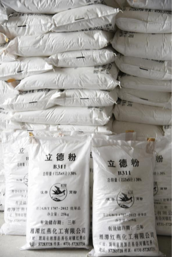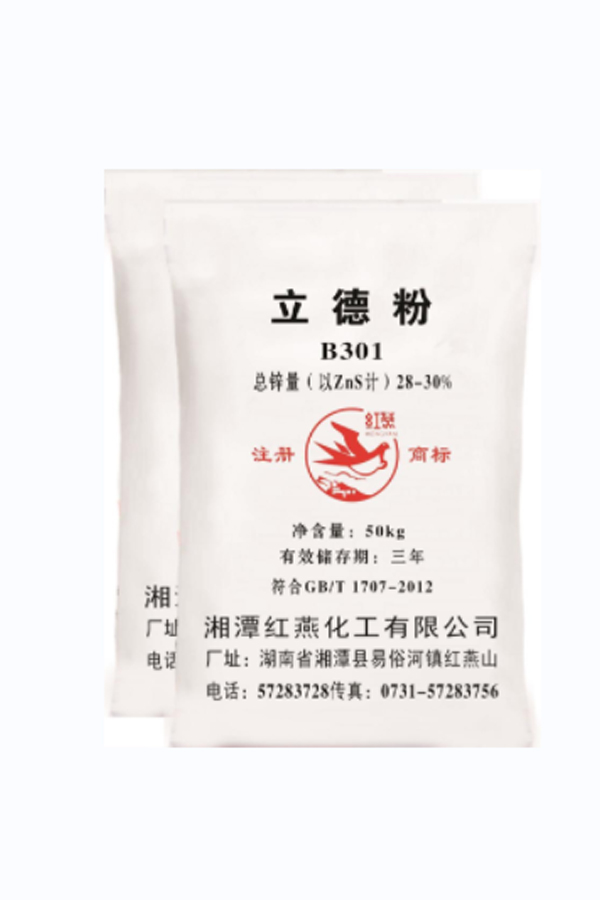 公司主導產品“紅燕牌”B301、B311型立德粉、耐曬白,為近似等分子比的硫化鋅和硫酸鋇共同沉淀物,經煅燒而成的白色顏料。屬于無毒白色粉末,不溶于水,耐熱性能良好,相對密度小,有優(yōu)異的遮蓋力。